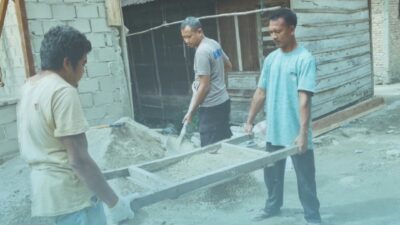 Brimob Bersama Warga Dirikan Rumah Korban Banjir di Tolang Julu
