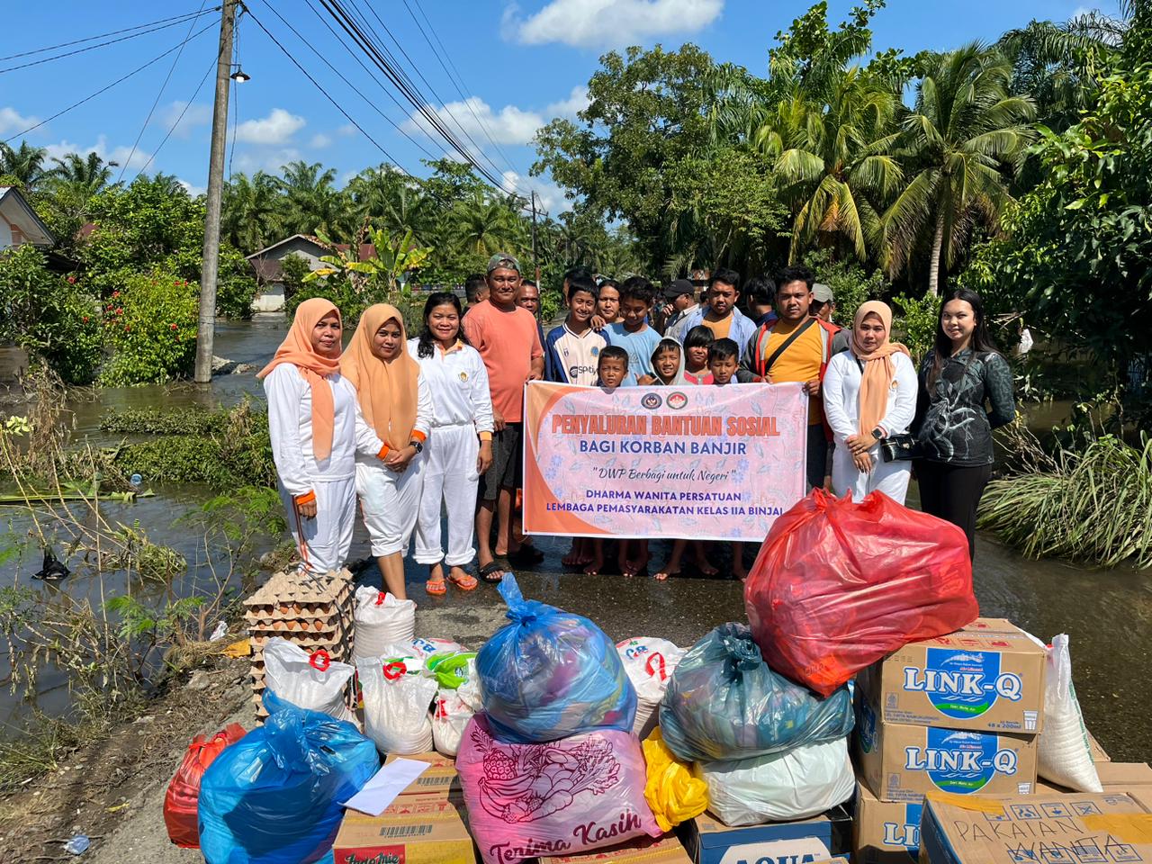 CORAKNEWS.COM, BINJAI,– Keluarga Besar Dharma Wanita Persatuan Lapas Kelas IIA Binjai menunjukkan kepedulian mereka terhadap korban banjir dengan melakukan penyaluran bantuan sosial.