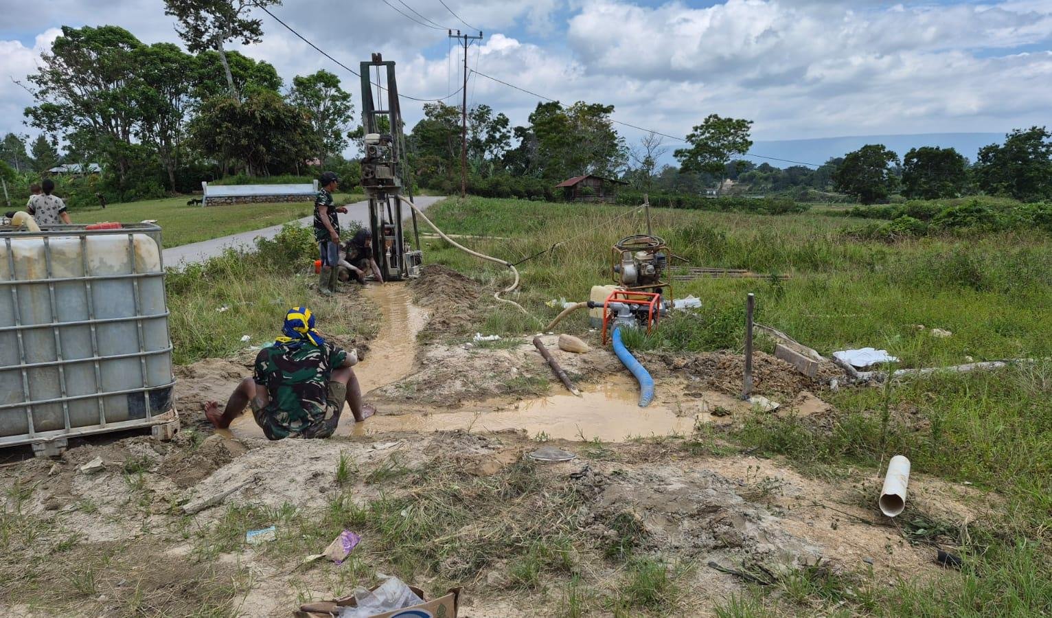 Dari hasil deteksi geolistrik, titik air potensial ditemukan di kedalaman 90 meter. Pengeboran ini merupakan bagian dari *Program Unggulan Kepala Staf Angkatan Darat (Kasad) Jenderal TNI Maruli Simanjuntak* untuk memenuhi kebutuhan dasar air bersih masyarakat, khususnya di daerah dataran tinggi/pengunungan.