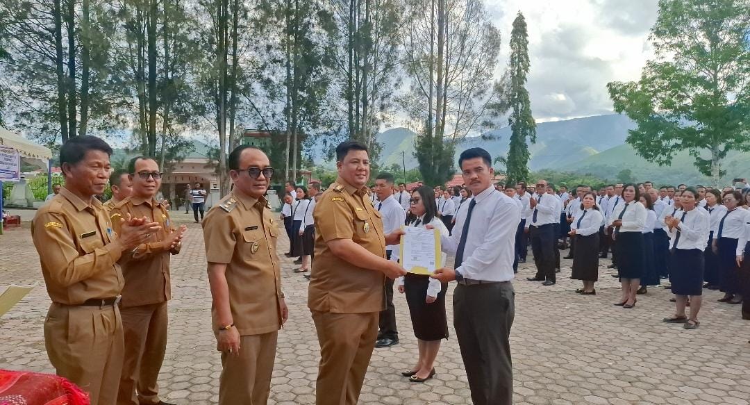 CORAKNEWS.COM, SAMOSIR, – Harapan baru bagi tenaga honorer di Kabupaten Samosir akhirnya terwujud. Sebanyak 803 Pegawai Pemerintah dengan Perjanjian Kerja (PPPK) Paruh Waktu resmi dilantik dan menerima Surat Keputusan (SK) yang diserahkan langsung oleh Bupati Samosir Vandiko Timotius Gultom, Selasa (13/1/2026), di Halaman Kantor Bupati Samosir.