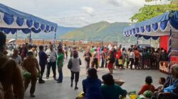 CORAKNEWS, SAMOSIR – Dalam rangka Perayaan Hari Jadi Kabupaten Samosir ke-20, Bupati Samosir Vandiko T. Gultom dan Wabup Martua Sitanggang melakukan pemukulan gendang sebagai tanda pembukaan secara resmi stand pameran UMKM di Komplek Water Front City Pangururan, Selasa (26/02/2024).