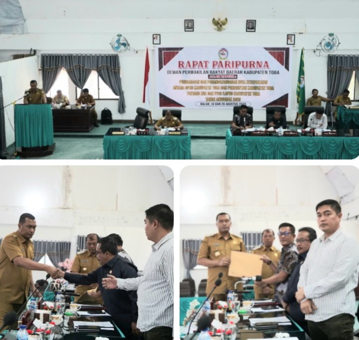 CORAKNEWS.COM, TOBA-Bupati Toba Effendi Sintong P. Napitupulu menyampaikan Nota Pengantar Rancangan Perubahan Kebijakan Umum Anggaran (P.KUA) dan Rancangan Perubahan Prioritas dan Plafon Anggaran Sementara (P.PPAS) Anggaran Pendapatan dan Belanja Daerah (APBD) Kabupaten Toba Tahun Anggaran 2025 kepada DPRD Toba pada rapat paripurna yang digelar di gedung DPRD Toba pada Selasa (19/8/2025).