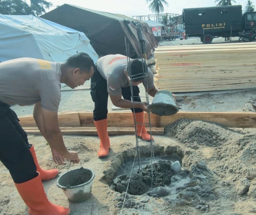 Danton Penugasan Operasi Aman Nusa II, Ipda Leonardo Marbun, yang turut mengoordinasikan personel dalam pengamanan sekaligus kerja sosial bersama masyarakat. Pada pembangunan huntara di Desa Garoga, personel Brimob bersama warga membantu pengecoran tiang pondasi rumah milik Bapak Aswin Wardi. Proses pengerjaan saat ini masih berlangsung dan berjalan sesuai tahapan.