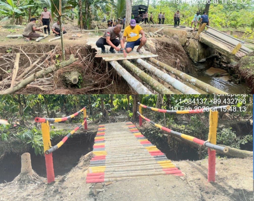 Kehadiran personel Brimob di lokasi mendapat apresiasi dari warga yang merasakan langsung dampak terputusnya akses transportasi. Sinergi antara aparat dan masyarakat dalam pembangunan jembatan darurat tersebut mencerminkan semangat gotong royong untuk menjaga kelancaran aktivitas dan keselamatan bersama.(rel)