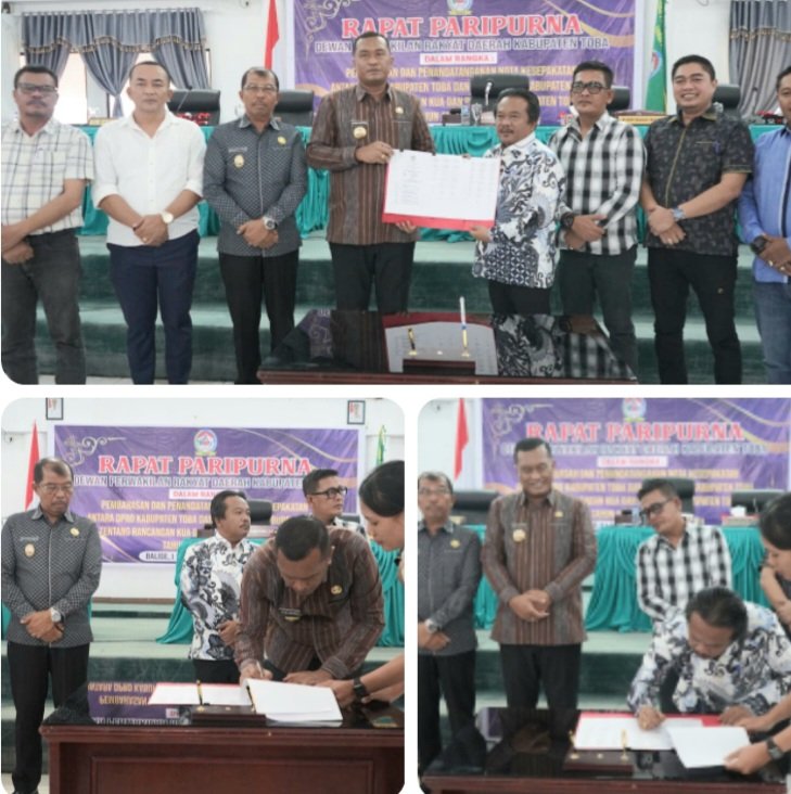 CORAKNEWS.COM, TOBA-Usai penyampaian laporan hasil pembahasan Badan Anggaran (Banggar) DPRD Kabupaten Toba tentang Kebijakan Umum Anggaran (KUA) dan Rancangan Prioritas dan Plafon Anggaran Sementara (PPAS) Anggaran Pendapatan Belanja Daerah (APBD) Kabupaten Toba Tahun Anggaran 2026, rapat paripurna DPRD Kabupaten Toba kemudian dilanjutkan pada agenda penandatanganan kesepakatan bersama atas KUA dan PPAS APBD Kabupaten Toba Tahun Anggaran 2026, Jumat (12/9/2025).