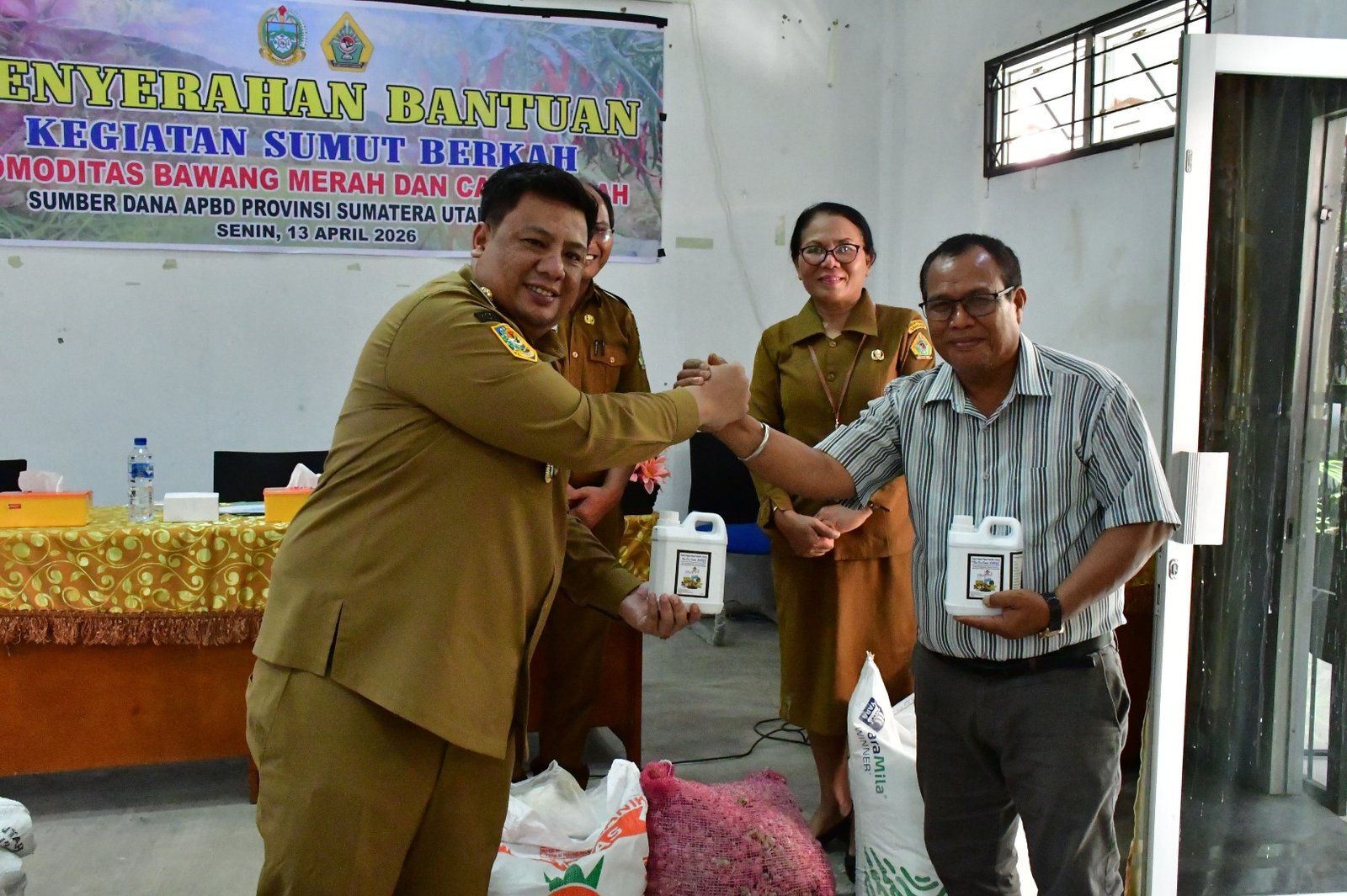 CORAKNEWS.COM, SAMOSIR, – Pemerintah Kabupaten Samosir dan Pemerintah Provinsi Sumatera Utara melalui program Sumut Berkah menyerahkan bantuan bibit dan sarana produksi pertanian kepada kelompok tani di Aula Dinas Ketahanan Pangan, Pertanian dan Perikanan, Senin (13/4/2026).