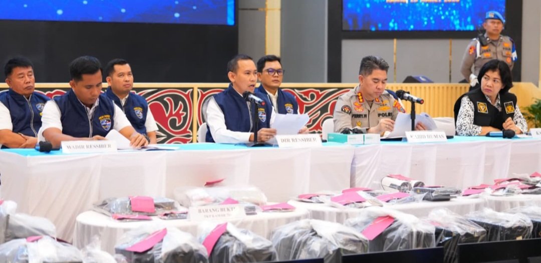 Kasus tersebut dipaparkan oleh Dirresiber Polda Sumut Kombes Pol Dr. Bayu Wicaksono dalam konferensi pers yang dibuka Kabid Humas Polda Sumut Kombes Pol Ferry Walintukan di Aula Tribrata Polda Sumut, Kamis (26/3/2026).