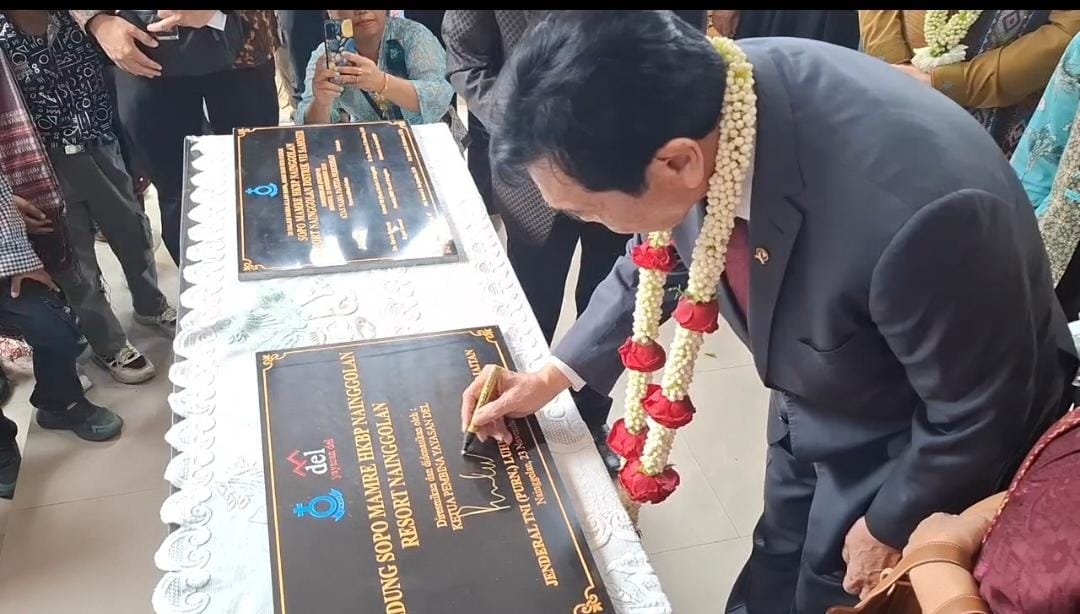 CORAKNEWS.COM, SAMOSIR – Jenderal (TNI) Luhut Binsar Panjaitan bersama Ibu Devi Simatupang mengunjungi HKBP Resort Nainggolan dalam rangka peresmian Sopo Mamre HKBP Nainggolan di Kabupaten Samosir pada Minggu, 23 November 2025. Pembangunan Sopo Mamre ini merupakan donasi dari Ketua Pembina Yayasan DEL, Jenderal TNI (Purn) Luhut Binsar Panjaitan.