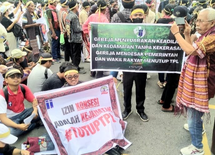 Massa aksi yang terdiri dari berbagai elemen masyarakat menuntut agar TPL dihentikan operasionalnya alias ditutup karena dianggap merugikan lingkungan dan masyarakat sekitar.