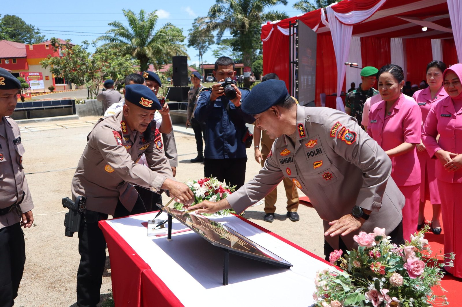 Acara peresmian berlangsung khidmat dengan dihadiri sejumlah pejabat dan tokoh penting, antara lain Wakil Wali Kota Padang Sidempuan, Sekretaris Dewan, Danyonif 123/Rajawali, Karoops Polda Sumut, Dirkrimum Polda Sumut, Kabid Humas Polda Sumut, serta tokoh agama dan tokoh adat setempat.
