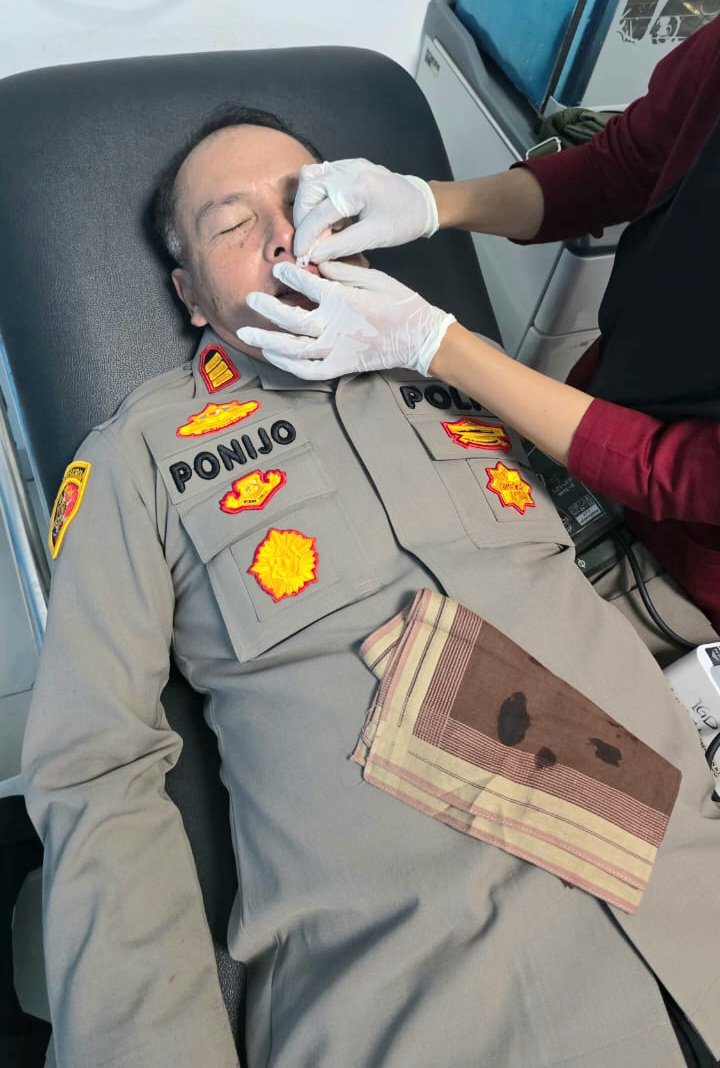 Saat mencoba melerai dan menenangkan warga yang terlibat, ia justru menjadi sasaran lemparan yang menghantam wajahnya.