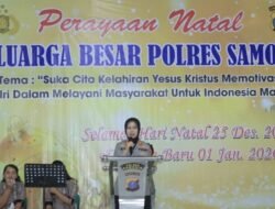 CORAKNEWS.COM, SAMOSIR – Keluarga Besar Polres Samosir menggelar Perayaan Hari Raya Natal Tahun 2025 dengan penuh khidmat dan sukacita di Aula Paroki Gereja Katolik Santo Mikhael, Desa Pardomuan I, Kecamatan Pangururan, Kabupaten Samosir, pada Sabtu (27/12/2025) pukul 09.00 WIB.