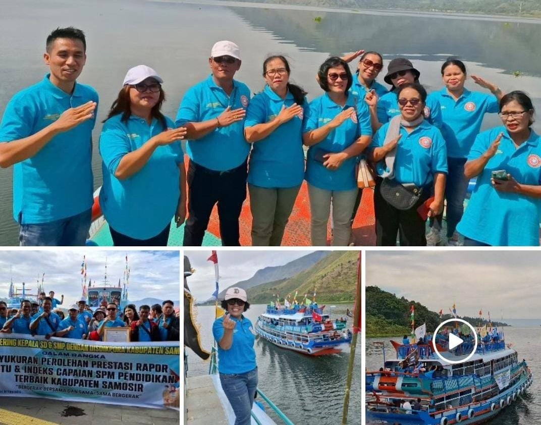 Kepala SD, SMP dan Disdikpora Samosir, Syukuran Di Atas Kapal Wisata Danau Toba