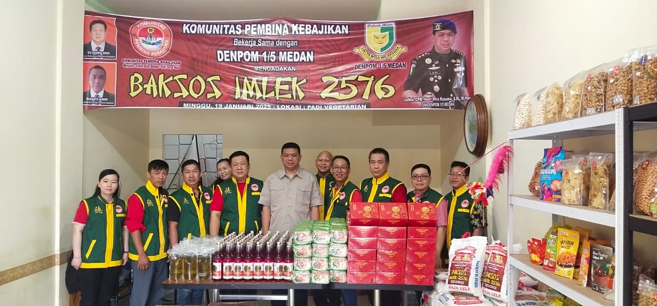 CORAKNEWS.COM, MEDAN,- Komunitas Pembina Kebajikan bekerja sama dengan Detasemen Polisi Militer (Denpom) 1/5 Medan mengadakan kegiatan bakti sosial (baksos) dalam rangka perayaan Imlek 2576.