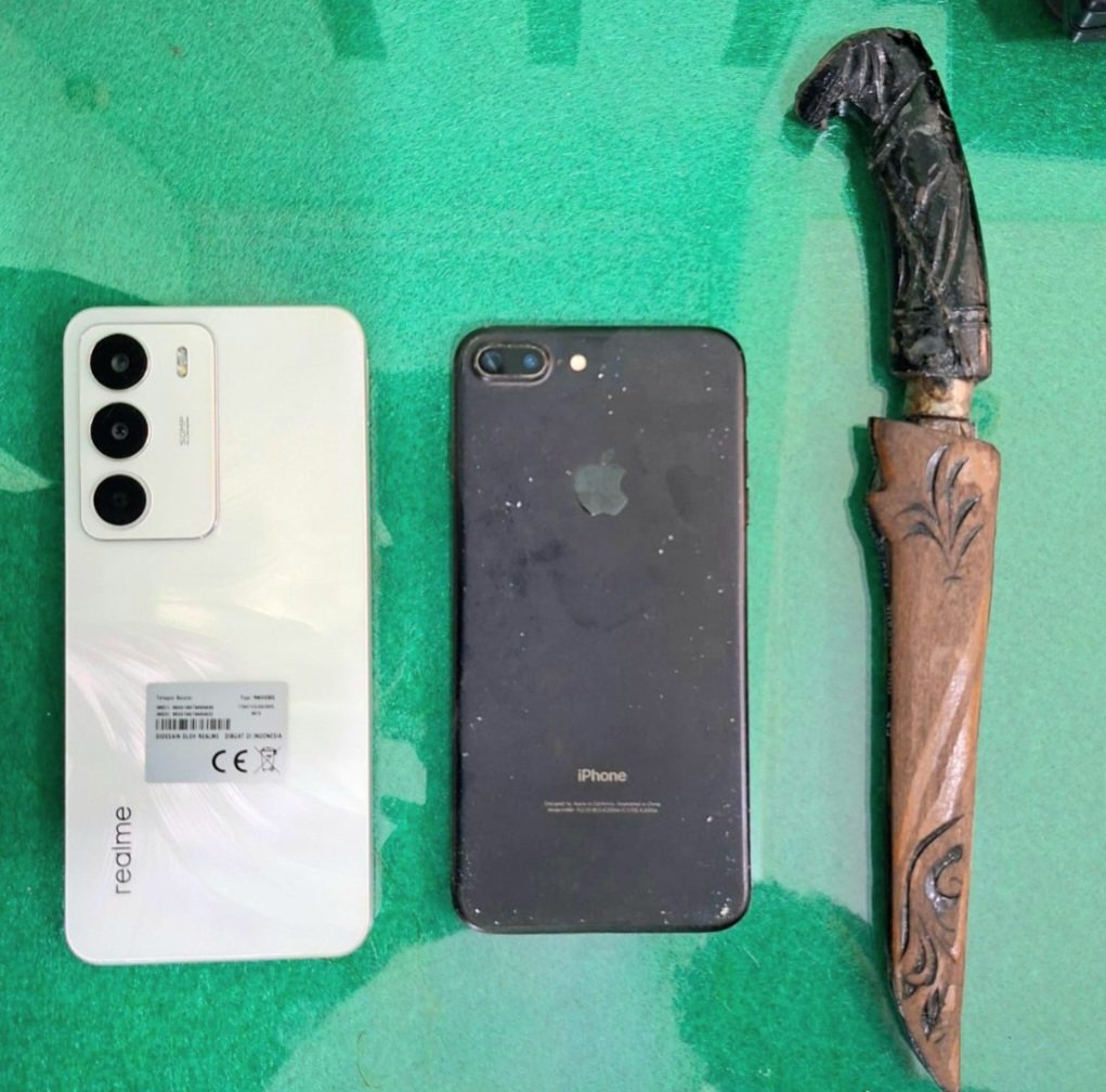Saat dilakukan penangkapan, petugas menemukan ponsel Realme milik korban pada pelaku. Selain itu, MS juga kedapatan membawa sebilah senjata tajam jenis belati yang diselipkan di pinggangnya.