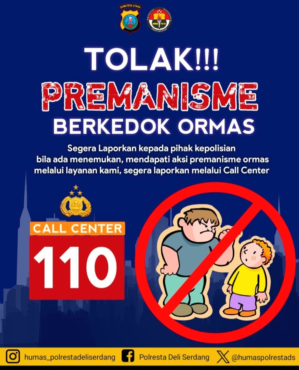 Himbauan ini disampaikan oleh jajaran Polresta Deli Serdang dengan maraknya informasi yang beredar di media sosial mengenai aksi premanisme yang berkedok Ormas.