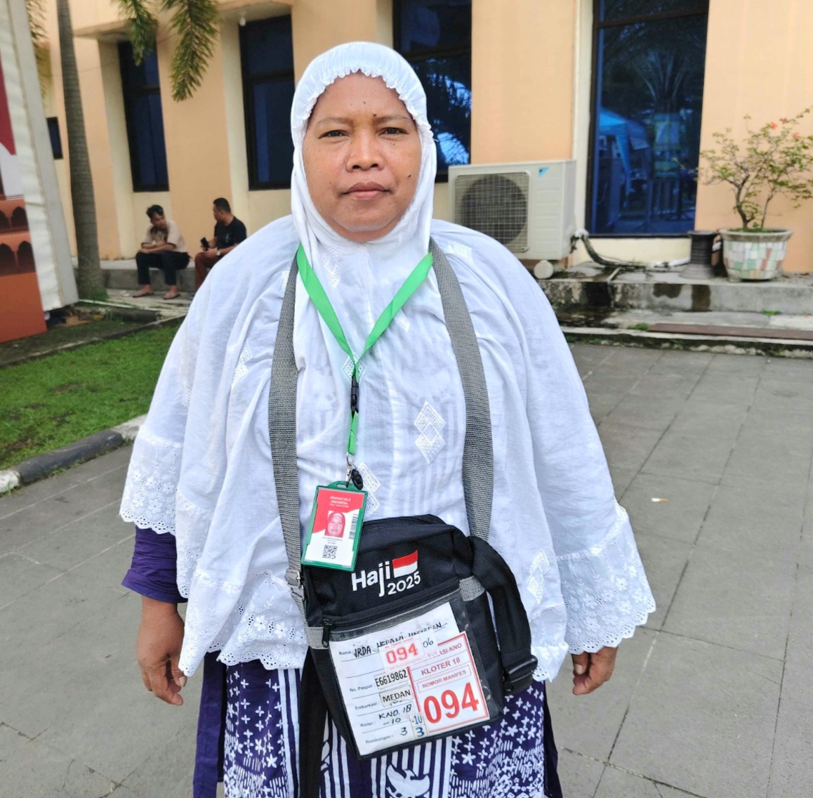 “Sejak 2012 saya sudah daftar bersama ibu tapi terlebih dahulu dipanggil sang ilahi. Waktu itu, saya dan ibu cuma niatkan saja karena Allah. Uang belum ada semua, tapi saya yakin rezeki itu bisa dicari kalau niatnya benar,” ujar Irda dengan mata berkaca-kaca, sesaat sebelum keberangkatannya dari Asrama Haji Medan sebagai bagian dari Kloter 18.