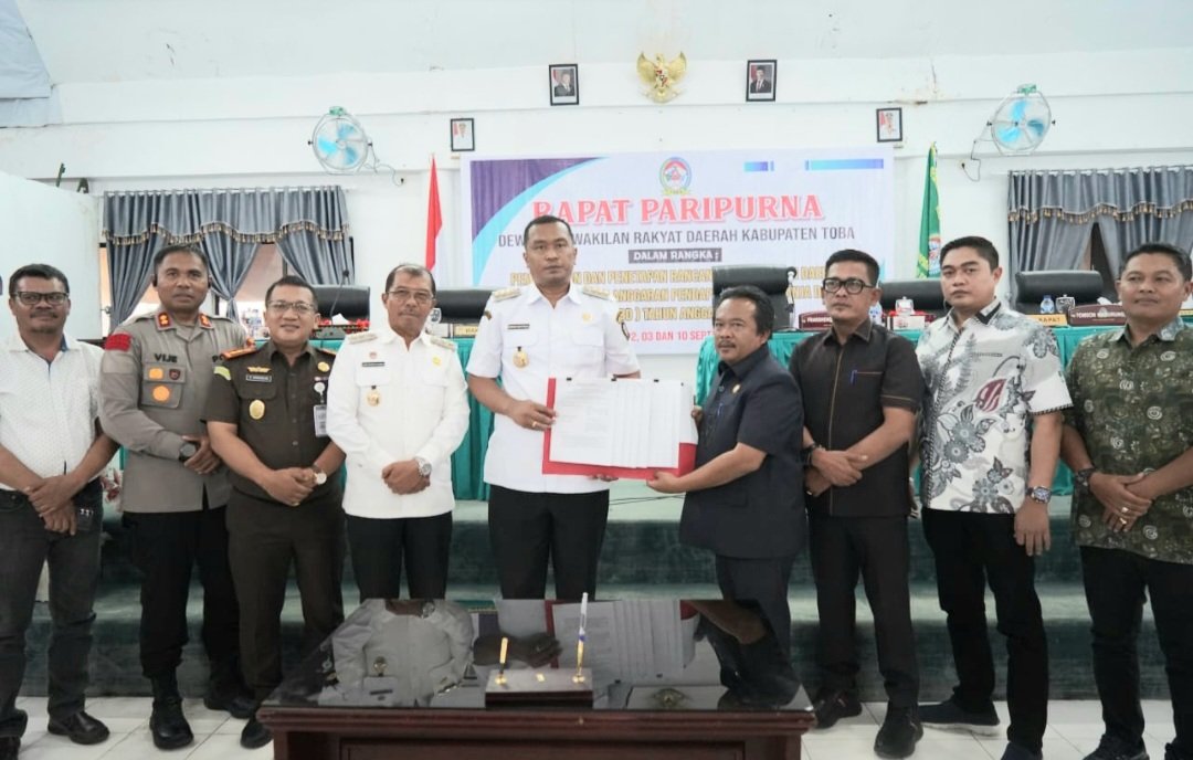 Pengesahan ini ditandai dengan penandatanganan nota kesepakatan antara Bupati Toba Effendi Sintong P. Napitupulu sebagai Bupati Toba dan juga pimpinan DPRD Kabupaten Toba dalam Rapat Paripurna di gedung DPRD, Rabu (10/9/2025).
