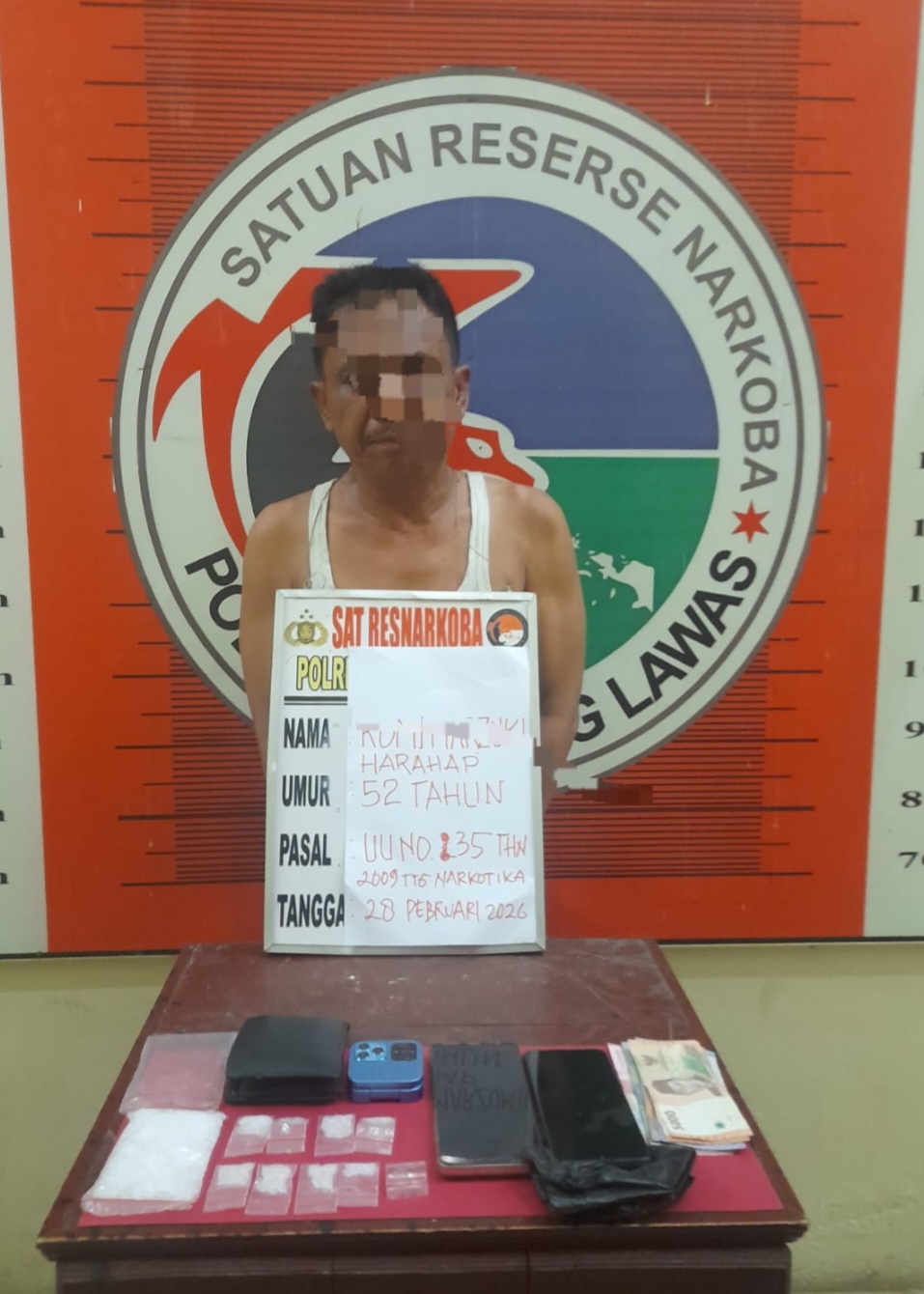 CORAKNEWALS.COM, PALAS – Tim Opsnal Satuan Reserse Narkoba Kepolisian Resor Padang Lawas (Satresnarkoba Polres Palas) kembali menangkap seorang pengedar narkotika jenis sabu Berinisial MRH, (52), warga desa Pancaukan, Kecamatan Barumun, Kabupaten Palas, di salah satu rumah yang berlokasi di Wek I, Pasar Sibuhuan, Kecamatan Barumun, Kabupaten Palas. Sabtu. (28/02/2026), Pukul 03.30 WIB dini hari.