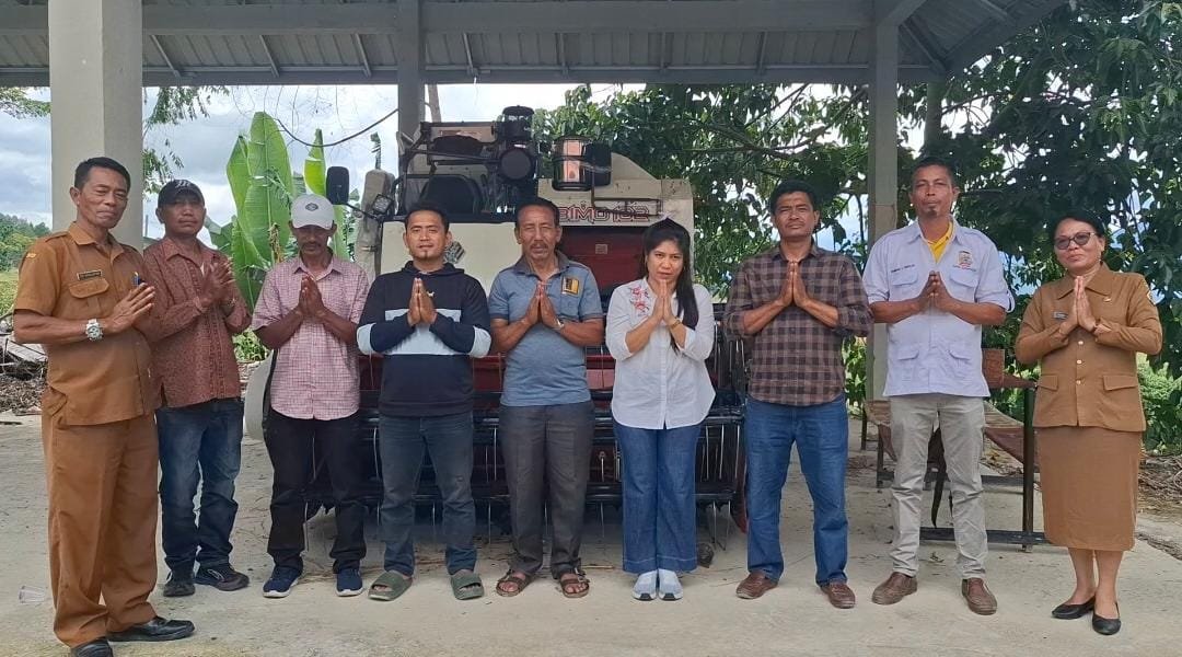 CORAKNEWS.COM, SAMOSIR,- Pemerintah Kabupaten Samosir melalui Dinas Ketahanan Pangan dan Pertanian menyerahkan satu unit combine harvester besar bantuan APBN kepada Kelompok Tani Miduk, Desa Parsaoran Onanrunggu, Kecamatan Onanrunggu. Penyerahan dilakukan di Kompleks Perkantoran Parbaba pada Selasa, 30 Desember 2025.