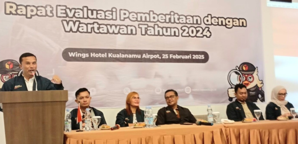 CORAKNEWS.COM, MEDAN – Badan Pengawas Pemilu (Bawaslu-Red) mengadakan pertemuan dengan wartawan Sumatera Utara dengan mengangkat tema Rapat Evaluasi Pemberitaan dengan Wartawan Tahun 2024 di Wings Hotel Kualanamu Airpot, Selasa (25/2/ 2025).