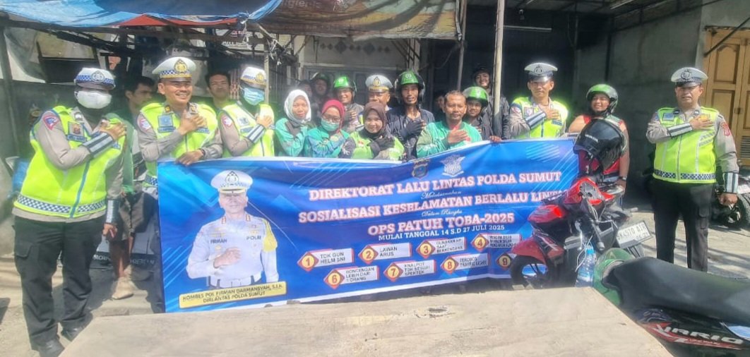CORAKNEWS.COM, MEDAN – Guna meningkatkan kesadaran masyarakat terhadap pentingnya keselamatan berlalu lintas, Direktorat Lalu Lintas Polda Sumatera Utara terus menggencarkan kegiatan edukasi dan sosialisasi tertib berlalu lintas melalui Operasi Patuh Toba 2025.