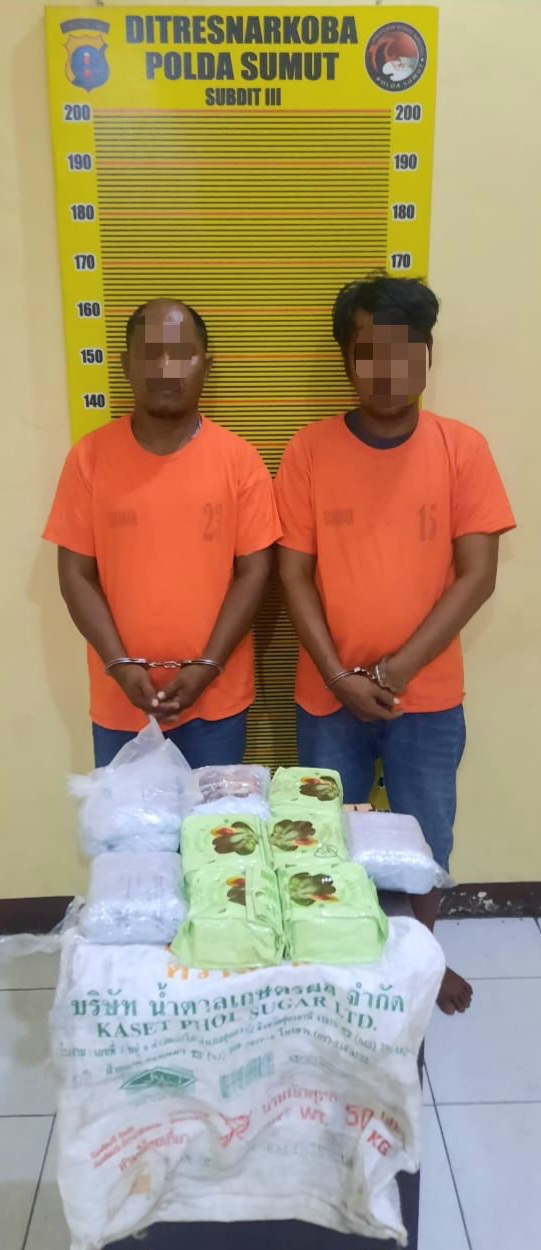 Kedua tersangka kini diamankan di Mapolda Sumut dan dijerat dengan Pasal 114 ayat (2) Jo Pasal 132 ayat (1) dan/atau Pasal 112 ayat (2) UU RI No. 35 Tahun 2009 tentang Narkotika, dengan ancaman hukuman mati atau penjara seumur hidup.