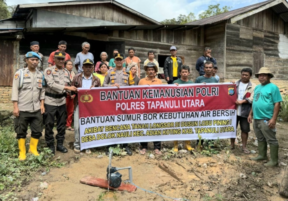 Kapolres Tapanuli Utara AKBP Ernis Sihotang menyampaikan bahwa bantuan sumur bor ini merupakan bagian dari komitmen Polri untuk selalu hadir di tengah masyarakat, khususnya saat masyarakat menghadapi situasi sulit akibat bencana alam.