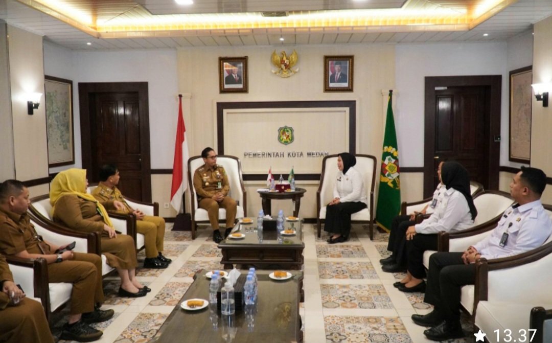 Dalam kesempatan tersebut, rombongan diterima langsung oleh Wali Kota Medan didampingi Asisten Pemerintahan dan Kesejahteraan Rakyat, Muhammad Sofyan, Kepala Dinas P3APMP2KB, Edliaty, serta Kepala Bagian Hukum Setda Kota Medan, Junaidi Sanjaya.