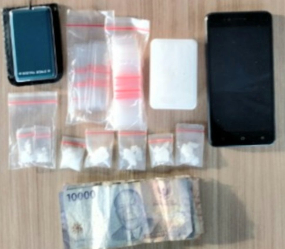 Dari tangan tersangka, petugas menyita barang bukti berupa 9 plastik klip berisi sabu, 2 bungkus plastik klip kosong, 1 kotak kecil warna putih, 1 unit timbangan elektrik, 1 unit handphone, serta uang tunai sebesar Rp60.000,- yang diduga hasil penjualan.