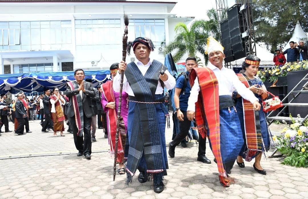 Seusai kebaktian, tokoh masyarakat melalui Lembaga adat , FKTM, menyambut kehadiran Bupati bersama Wakil Bupati Samosir diiringi Gondang Sabangunan. Dengan acara adat batak, Lembaga Adat Adan Budaya Kabupaten Samosir menyambut pelantikan Bupati dan Wabup Samosir dengan pemberian seperangkat pakaian adat Batak (Bulang-bulang) kepada Bupati Samosir, Wakil Bupati Samosir dan istri setelah didoakan Pastor Elio Sihombing.