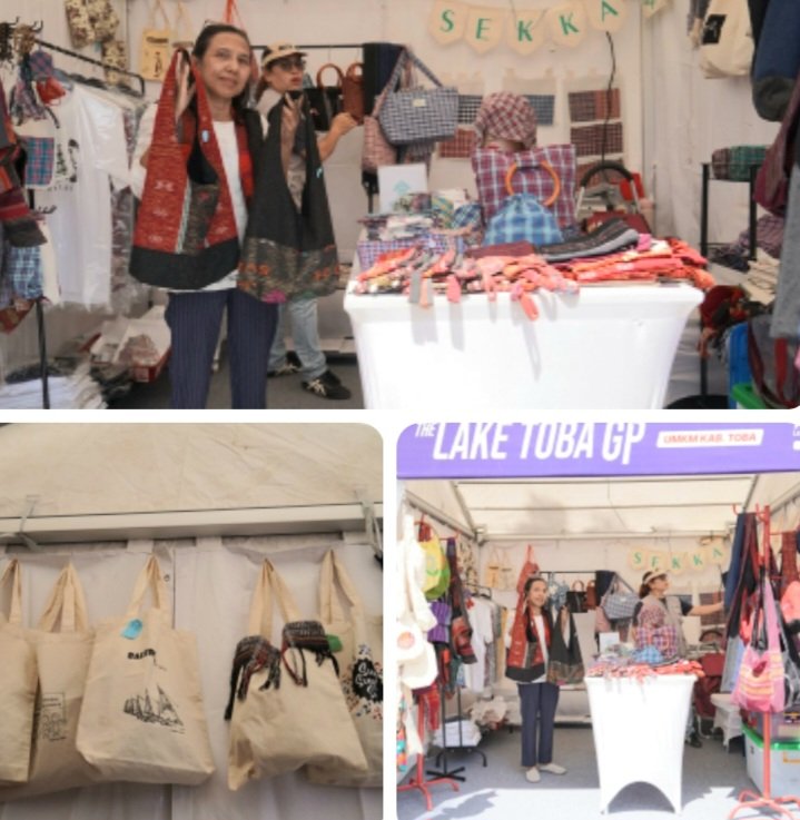 Salah seorang pelaku UMKM dari Sekka Craft, Pasudame Pardede yang memproduksi berbagai souvenir seperti tas sandang, dompet kecil, tote bag, gudie bag, topi dan produk lainnya mengakui bahwa sejauh ini souvenir paling banyak terjual adalah tas sandang dengan berbagai motif, termasuk motif ulos.