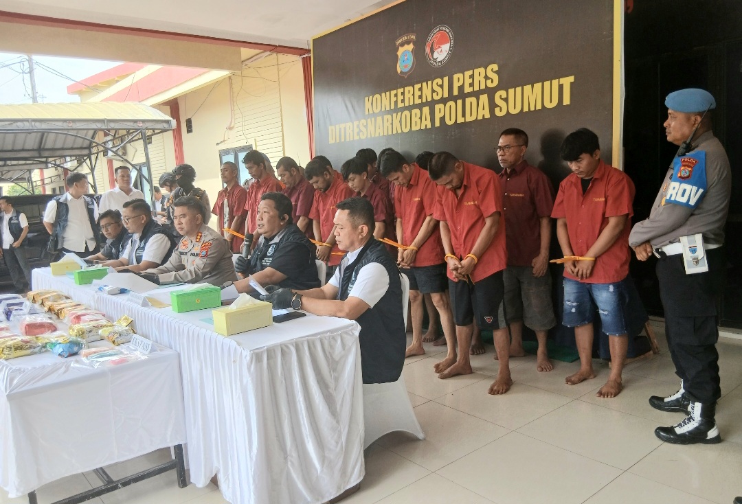 Dalam konferensi pers yang digelar di Direktorat Resnarkoba Polda Sumut pada Kamis siang (11/09/2025), turut hadir Kabid Humas Polda Sumut Kombes Pol Dr. Ferry Walintukan, S.I.K., S.H., M.H., Wadir Resnarkoba AKBP Diari Astetika, S.I.K., serta para Kasubdit Ditresnarkoba.