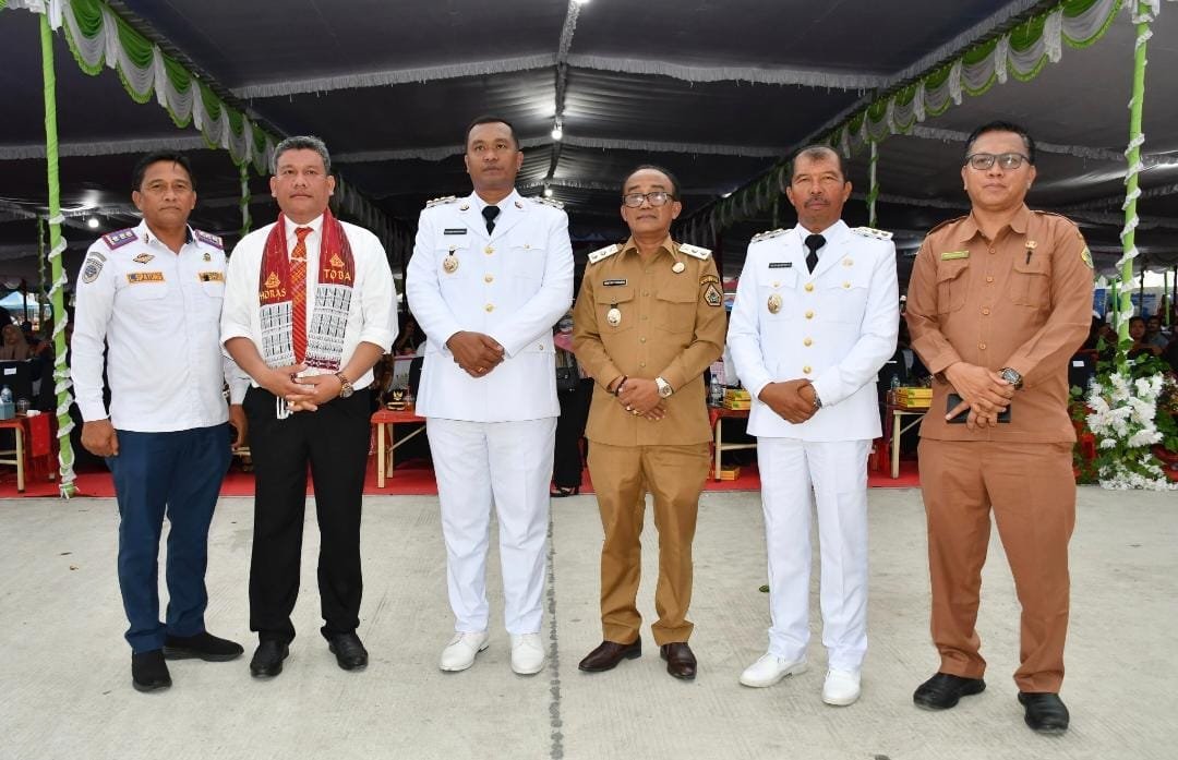 CORAKNEWS.COM, SAMOSIR – Wakil Bupati Samosir Ariston T Sidauruk didampingi Kadis Kominfo Immanuel Sitanggang, Kadis Perhubungan Laspayer Sipayung, Direktur RS Hadrianus Sinaga Iwan Sihaloho menghadiri undangan perayaan Hari Jadi ke-26 Kabupaten Toba yang digelar di Lapangan Sisingamangaraja XII Balige, Senin (10/3/25).